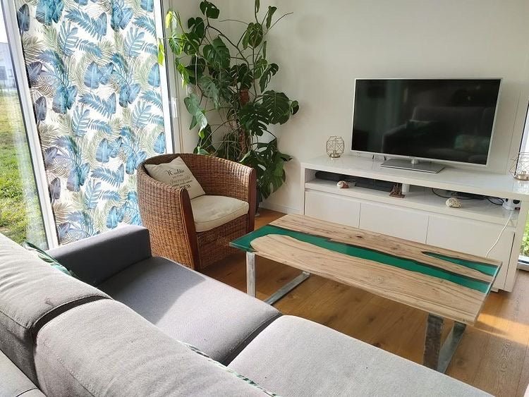 Découvrez notre table basse rivière en orme, avec des pieds en inox pour un style unique. Sa couleur vert apporte une touche de fraîcheur à votre intérieur. Parfait pour les amateurs de design contemporain et de matériaux durables. Ajoutez une touche d'originalité à votre salon avec cette table basse élégante et moderne.